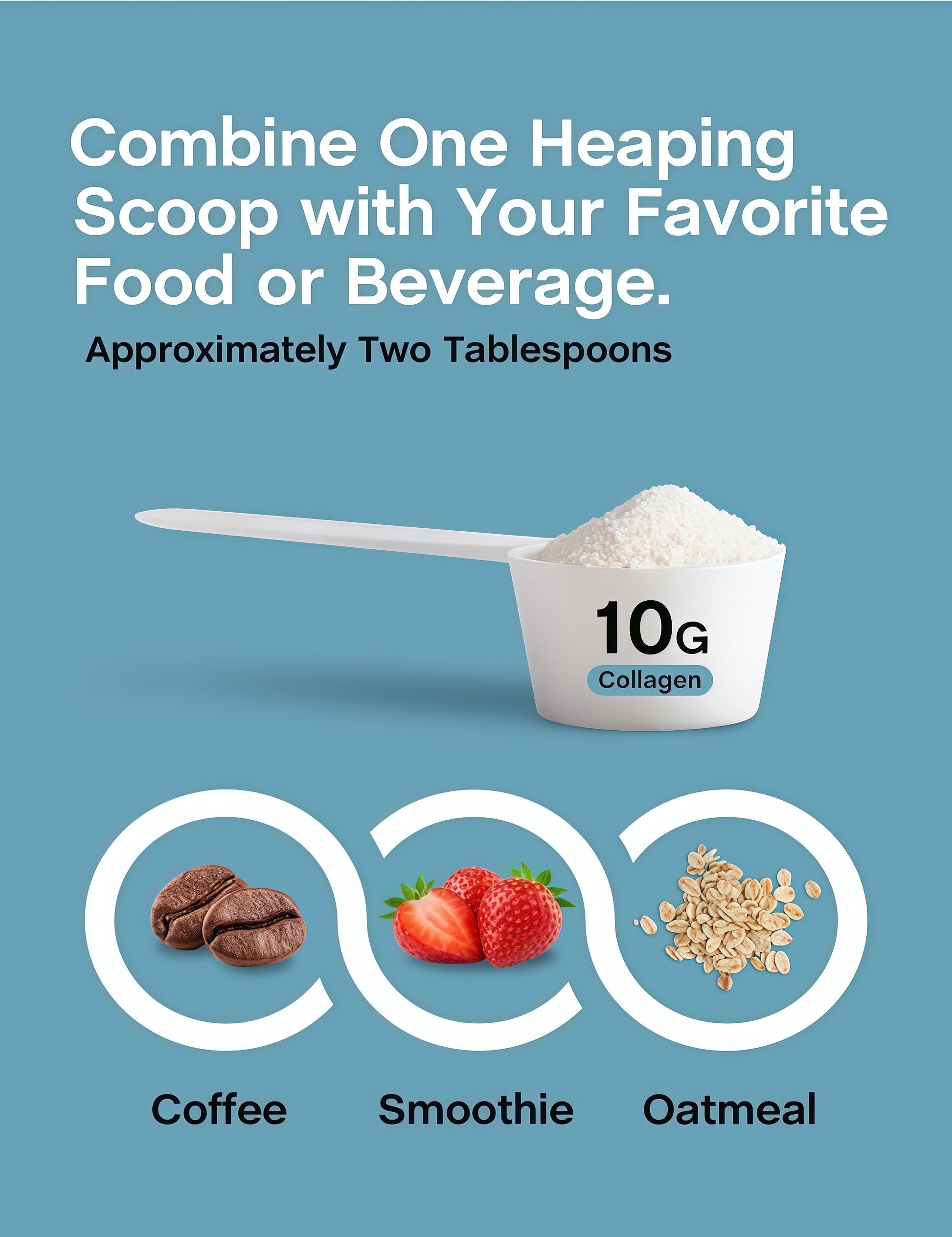 Mixing Method: Add the powder to 8-12 fl oz (240-360ml) of your preferred beverage. lt blends well withwater, coffee, tea, smoothies, milk (dairy or plant-based like almond milk), or yogurt. Stir, shake, or blendgently for 10-20 seconds until fully dissolved-no clumps will remain with proper mixing.